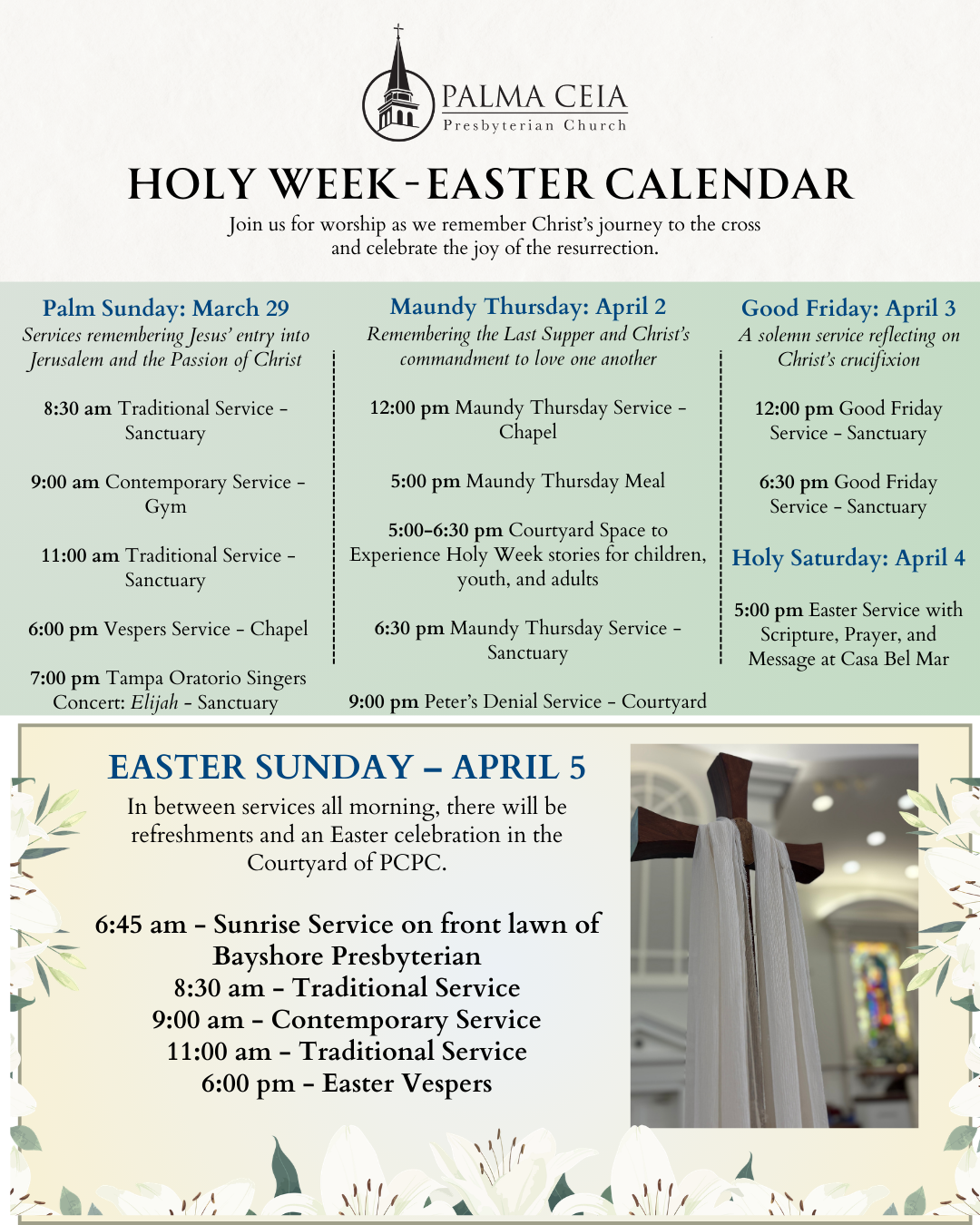 Fore more info about Presbyterian Women and Circles, call or text Jeanne Rowe 813-833-5270 or Susan Frost: SusanFrost@palmaceia.org.
