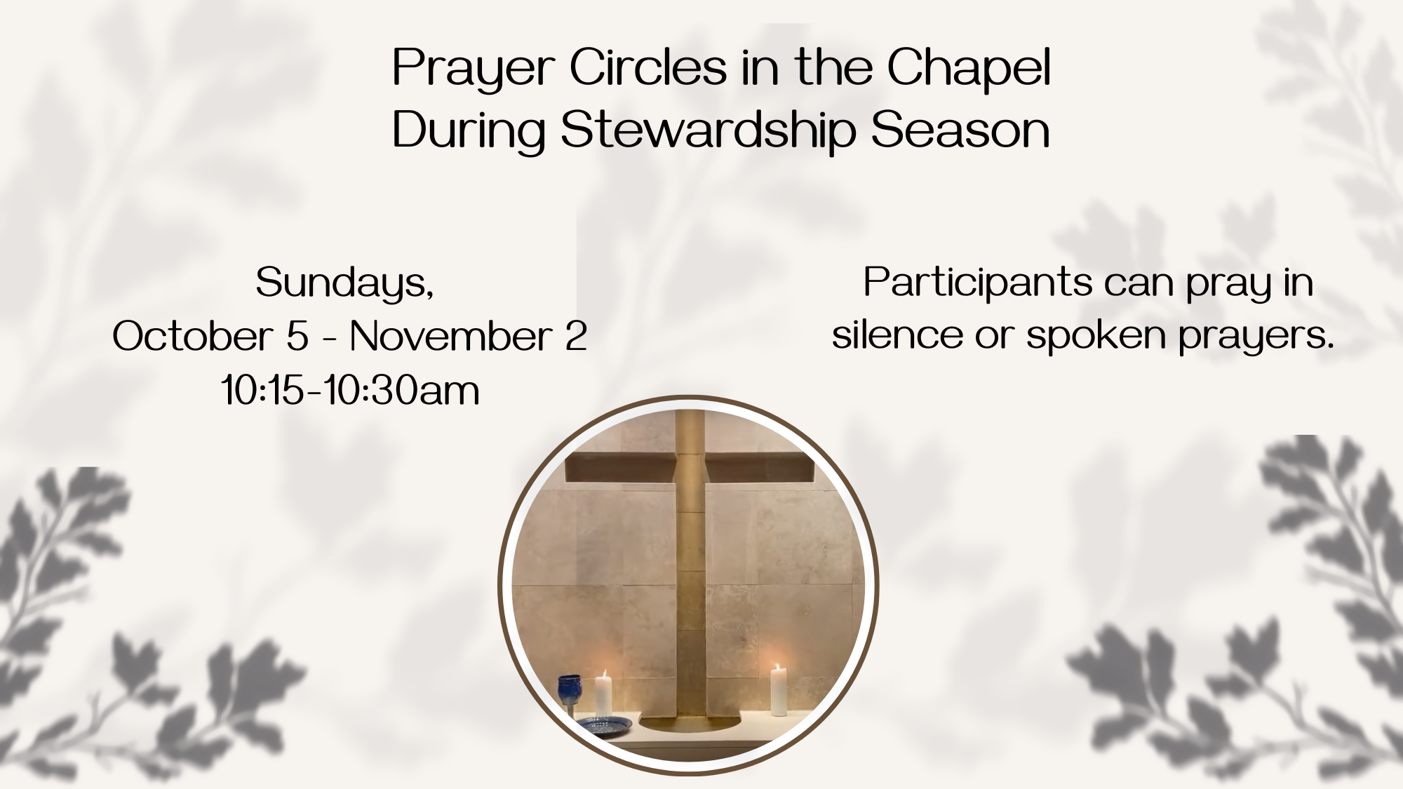 6pm Vespers Service in the Sanctuary with communion – Quiet 30-minute service with scripture, prayer, reflection, and communion.